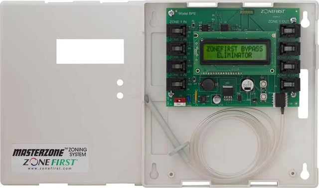 The Bypass Eliminator™ (Model BPEK) Control is an interface between a ZONEFIRST Zone Control Panel and its zone dampers. The BPEK is used to eliminate the need for a traditional separate by-pass duct and damper directed back into the return duct.